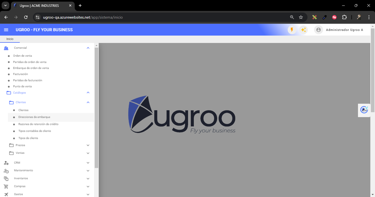 Ugroo© > Menú > Comercial > Catálogos > Clientes > Direcciones de embarque